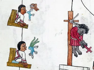 In October 1537, Mexico City’s relative calm was shattered. A group of 20 to 30 enslaved Africans, led by a man described as a “king” in Spanish accounts, hatched a bold plan. Joined by indigenous allies, likely Tlaxcalans and Aztecs, they aimed to kill their Spanish masters, burn haciendas, and flee to the rugged hills west of the city to build a free community. “They wanted a life beyond chains,” wrote Bernardino de Sahagún, a Spanish friar who chronicled life in Mexico in the decades immediately after the conquest. The rebels armed themselves with stolen knives, machetes, and makeshift spears, their resolve forged in shared suffering. The uprising began under cover of night. The rebels struck haciendas and small ranchos on the city’s outskirts, setting fires that lit up the sky. They killed several overseers—Spanish men who’d grown fat on forced labor—looting supplies and rallying others to join. The Codex Telleriano-Remensis paints the scene vividly: Africans with raised spears, their faces fierce, stand beside native warriors in traditional feathered gear, clashing with Spaniards on horseback. The codex’s indigenous artists, working under Spanish oversight, used black skin not as a slur but as a nod to Aztec reverence for dark hues, linked to gods like Tezcatlipoca and Tlaloc. The image in the codex captures chaos, showing flames, blood, and passionate defiance. The rebels’ plan was audacious: completely overthrow the Spanish government, seize Mexico City, and establish a mountain stronghold that would attract others and would grow over time. Africans brought tactics from their homelands, such as guerrilla raids seen in Angola’s wars, while Aztecs and Tlaxcalans knew the terrain, guiding escape routes through volcanic hills. For a moment, it all seemed possible. Spanish sentinels, caught off guard, scrambled to respond. “The city trembled,” Sahagún wrote, noting panic among European residents who feared a full-scale revolt. However, betrayal struck. An African slave, loyal to his Spanish master or coerced by fear, tipped off royal authorities. Spanish forces, armed with swords and attack dogs, hunted the rebels. The pursuit was brutal: dogs tore through the hills, and the captured rebels faced torture. The leaders, including the African “king” whose name has been lost to history, were hanged in Mexico City’s main plaza as a grim warning to others. The codex doesn’t show the mass executions but leaves modern viewers with a lone image of an African man clutching a cross hanging at the gallows. The codex’s stark lines and illustrations of spears broken and warriors fallen, hint at the high cost paid by rebels. The uprising failed, but its spark lingered, and a whisper of freedom spread quietly across the Spanish territories.