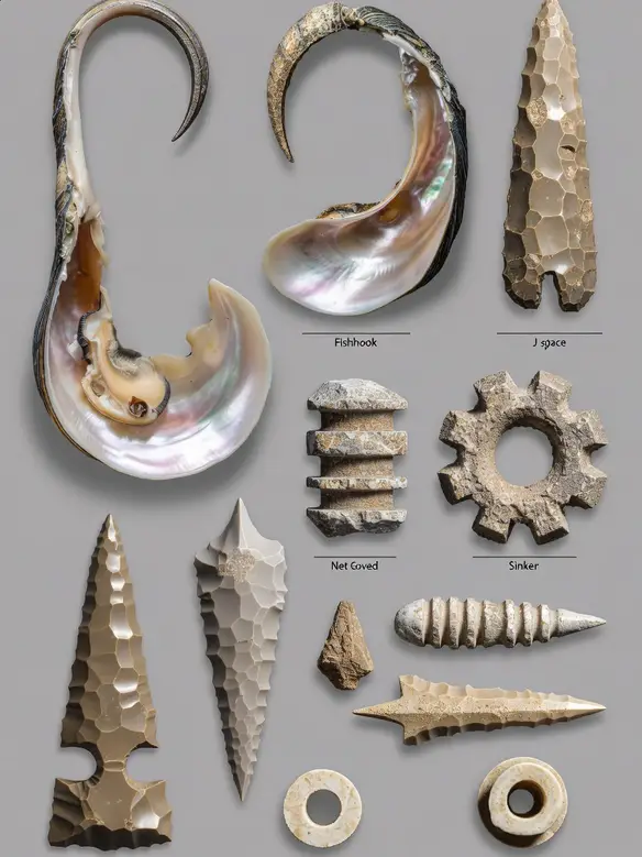 The lifestyle of the Matanchén people was that of skilled foragers who had achieved a degree of semi-sedentary or even sedentary existence. Unlike purely nomadic hunter-gatherers, they established habitation areas near the water’s edge, returning to the same locations season after season. Their economy revolved around shellfish collection, a reliable and relatively low-effort food source in a productive seaside environment. Harvesters likely waded into the shallow waters or used simple watercraft—perhaps basic canoes or rafts made from local materials—to access richer beds. Crude stone net weights found at sites indicate they may have dragged weighted nets along the bay bottom to gather shellfish in bulk.