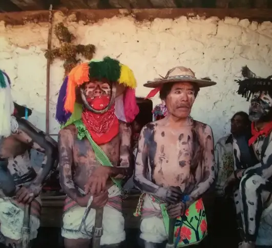 In the post-independence era, the Cora navigated modernization while clinging to traditions. Their economy remained subsistence-based, with families keeping cows for milk and cheese, sheep for wool, and other animals, though meat consumption was minimal. Crafts like pottery, weaving, and embroidery persisted, as did ritual kinship, where godparents were chosen at key life events to strengthen social ties. Religion evolved into a hybrid: nominally Roman Catholic, with ceremonies centering on traditional native elements. Peyote rites continued, and myths intertwined Christian figures like Jesus with indigenous deities like Sautari. One of the most vivid expressions of this syncretism is the Holy Week celebration, known as Judea, in villages like Santa Teresa. This week-long event, devoid of priestly oversight, reenacts Christ’s passion through indigenous lenses as a battle between good and evil. It begins on Wednesday with men marking village boundaries to “close the glory.” Men and boys paint themselves black and white, transforming into what they call “The Erased Ones,” engaging in mock battles. Women decorate eggs and participate in symbolic rituals. Processions carry wooden saints on carts, accompanied by copal incense, drums, flutes, and Roman centurions on horseback. The climax on Good Friday involves “destroying” the church altar, symbolizing crucifixion, followed by intense combats. By Saturday, exhaustion leads to resolution, blending Catholic resurrection with pre-Hispanic themes of metamorphosis, nature worship, and communal renewal.